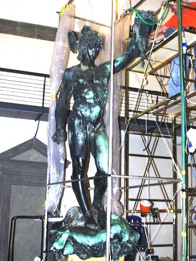 The XR-100CR is shown above performing X-Ray fluorescence of Benvenuto Cellini's Bronze satue of Perseus during its restoration in June, 1998 at the Uffizi Museum in Florence.