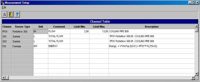 Limiting values and descriptions may be added to every measuring channel in the table.