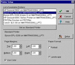 For documentation, all Windows standard output possibilities like printer and plotter are available. The use of colors is optional. Diagrams, measuring value lists and measurement setup protocol may be printed. Different measurement series may be joined and printed together. Partial measurements may be saved as separate files. Measurement value lists may be saved in ASCII or Excel format for further processing. The measuring data may be automatically saved as daily-, weekly-, or monthly files in the standard formats during the measurement.