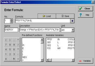 The measurement channels may be combined together to result in any formula. User defined formulas may be added and loaded anytime. In the formula entry, common mathematical functions like basic operations, sine, cosine, ln, log etc are available. The formula functions may be automatically entered in the channel table by clicking the mouse. Databank for Variables |